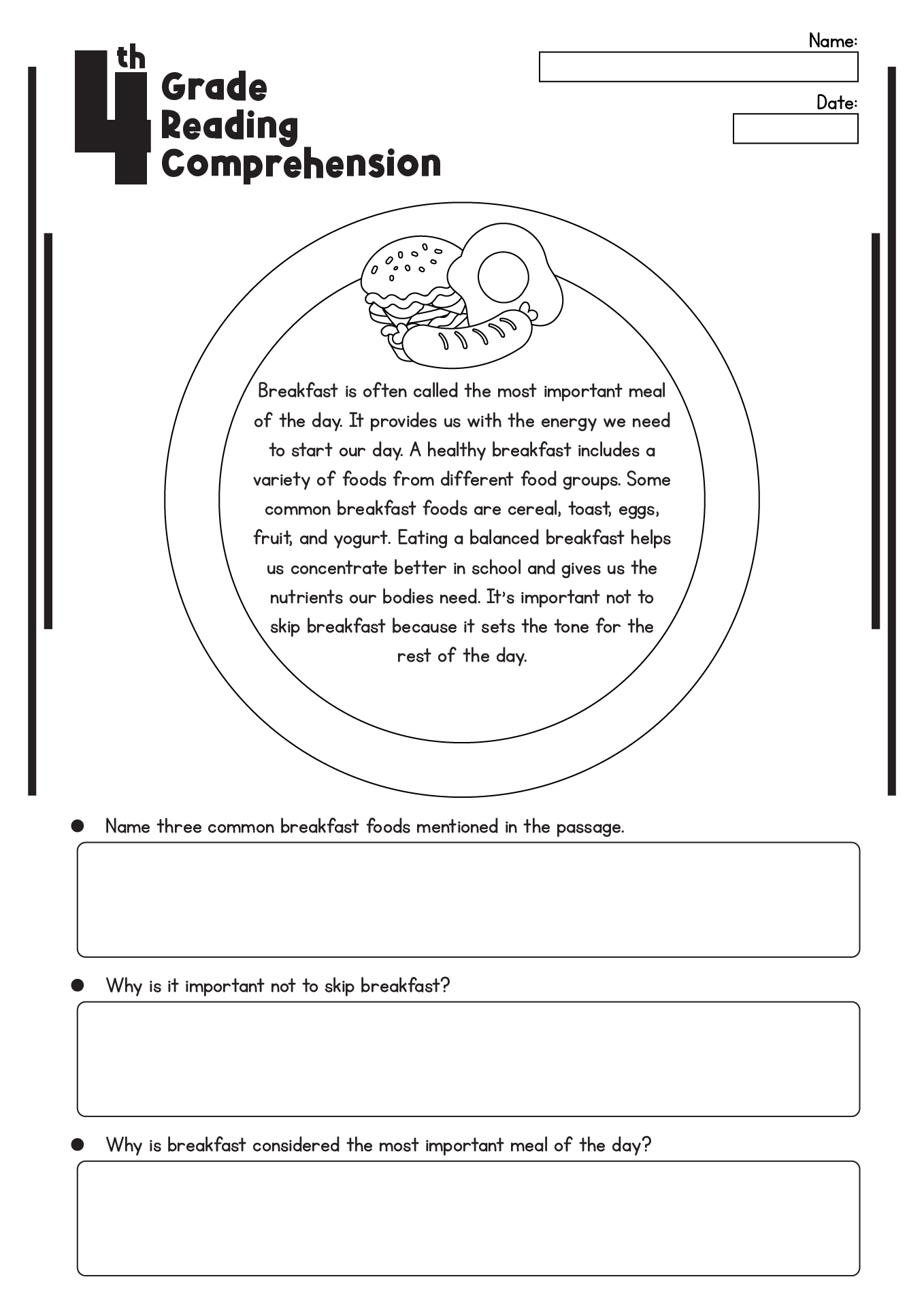 Practicing reading grade level passages and responding to fourth grade level comprehension questions will prepare students for the next grade level reading, comprehension and vocabulary work. If you want, you can use it like an exam, you can check the students' degree. Often comprehension worksheets are graphically organized to keep the little reader engaged and glued to them.